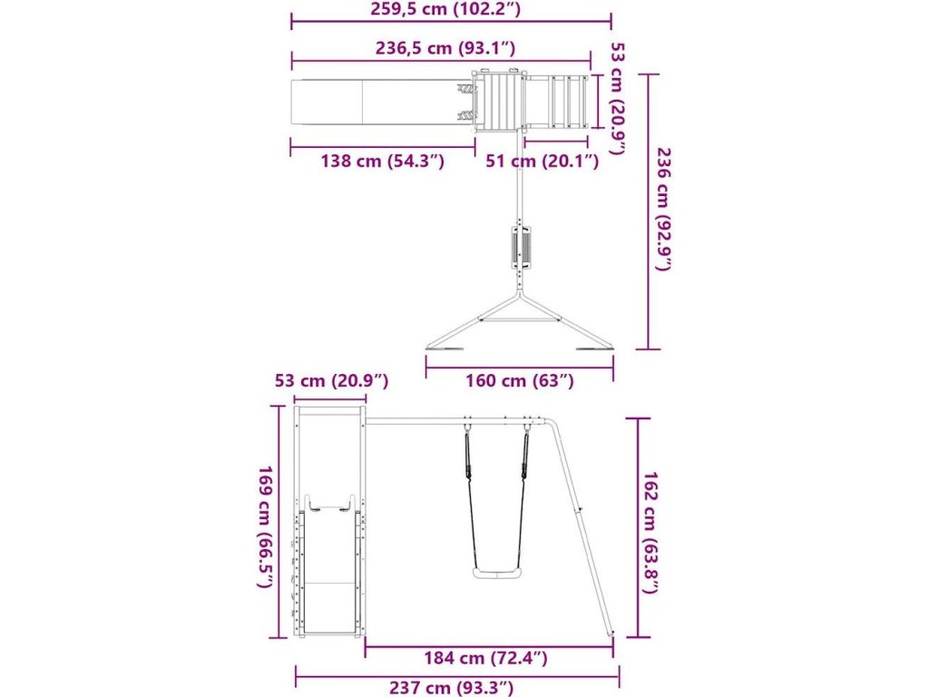 - Rozměry houpačky (každý kus): 33 x 22 x 113 cm (D x Š x V)