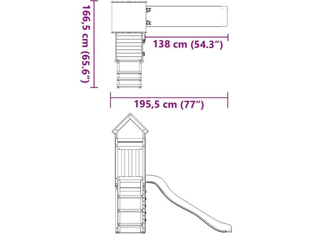 - Stabilní dřevěný rám: Dřevěný rám zahradní hrací věže zajišťuje mimořádnou pevnost a stabilitu.