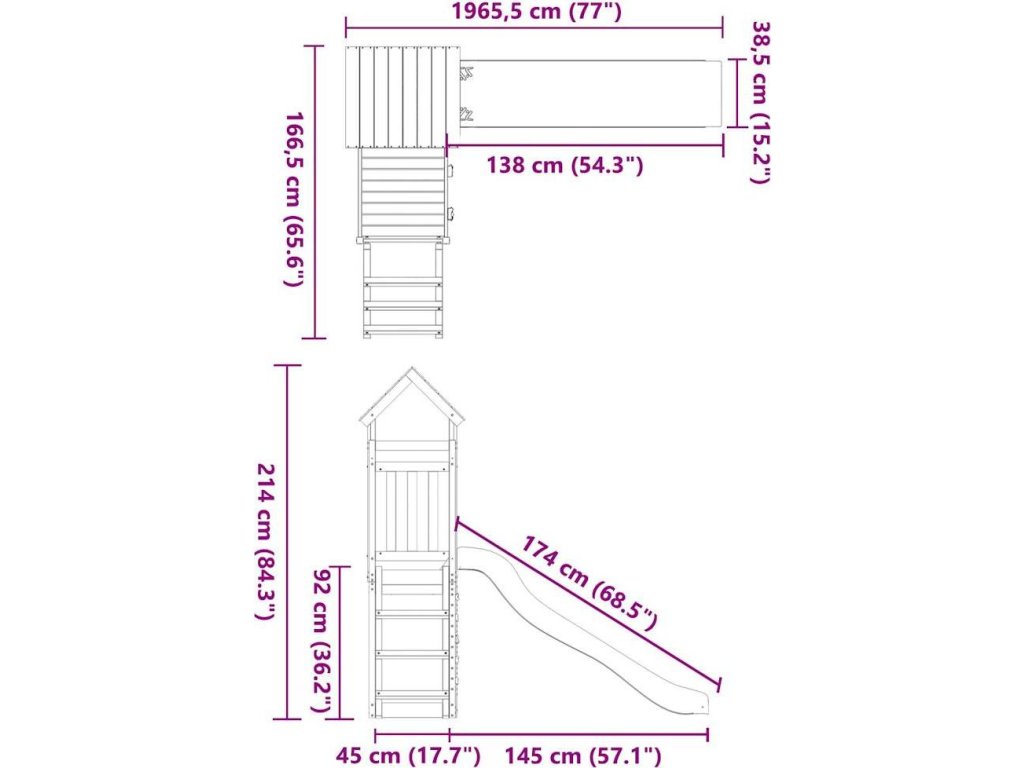 - Multifunkční herní centrum: Věž má plošinu ve výšce 90 cm a vyniká zvlněnou skluzavkou, žebříkem, lezeckou stěnou a pískovištěm. A navíc si mohou pozvat kamarády a užívat si zábavu společně.
