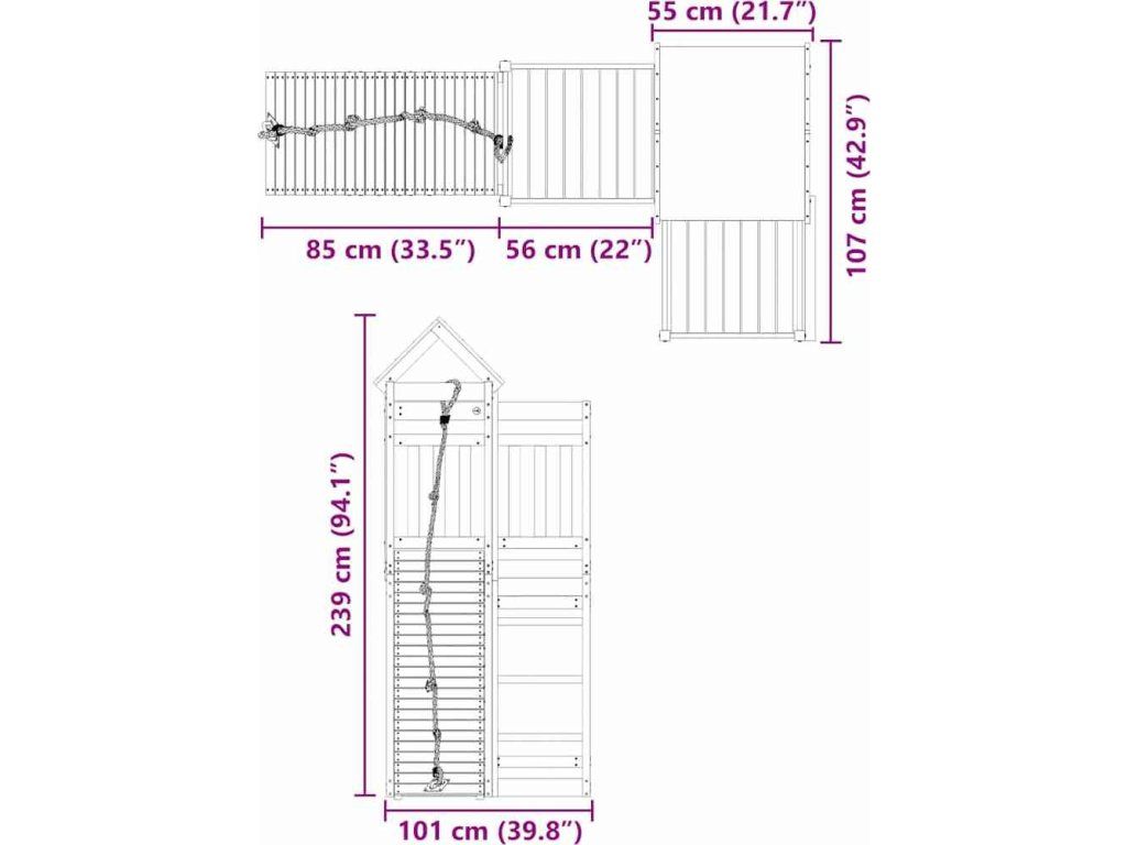 - Stabilní dřevěný rám: Dřevěný rám zahradní hrací věže zajišťuje mimořádnou pevnost a stabilitu.