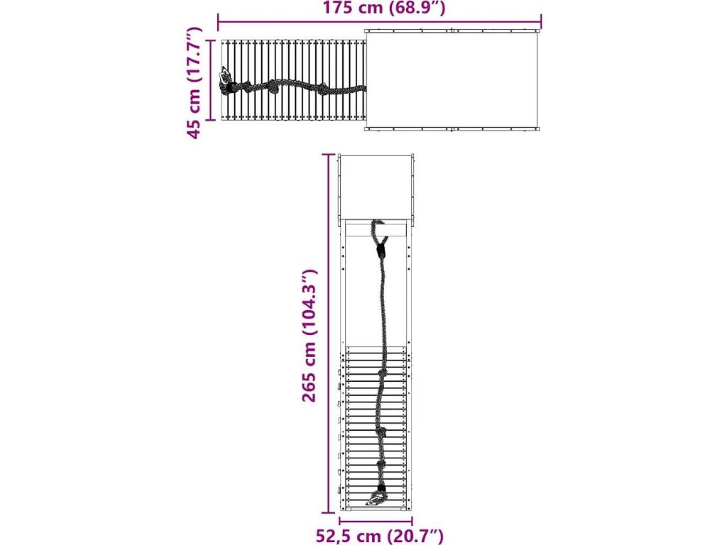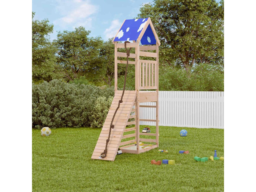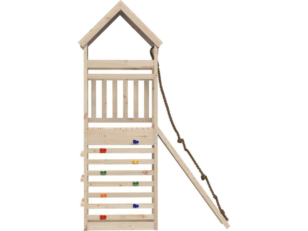 - Stabilní dřevěný rám: Dřevěný rám zahradní hrací věže zajišťuje mimořádnou pevnost a stabilitu.