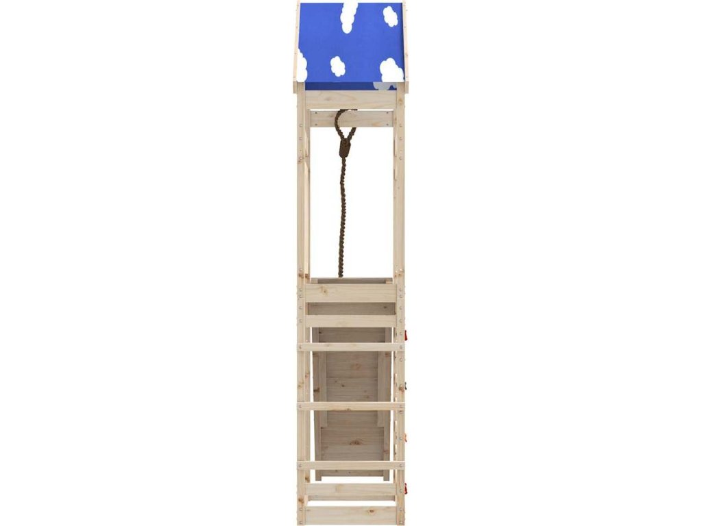 - Promyšlený design: Dřevěné zábradlí je navrženo tak, aby zajistilo bezpečnost dětí při jejich veselých hrách. Střecha s mráčky navíc poskytuje stín pro vaše děti v horkých letních dnech.