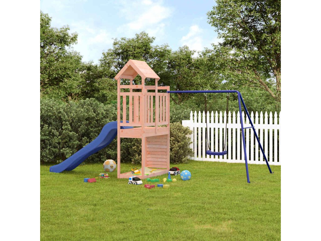 - Odolný materiál: Rám věže je vyroben z masivního dřeva douglasky. Masivní dřevo douglasky je vysoce odolný druh dřeva, který se výborně hodí pro venkovní použití. Dřevo douglasky je také pevné a vyžaduje minimum údržby i pod vlivem povětrnostních podmínek.