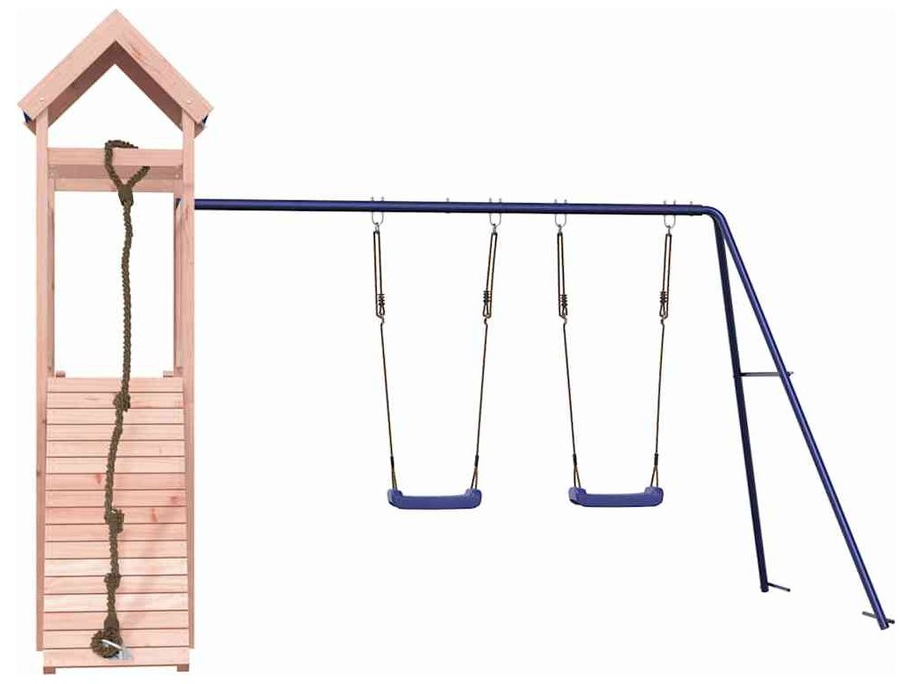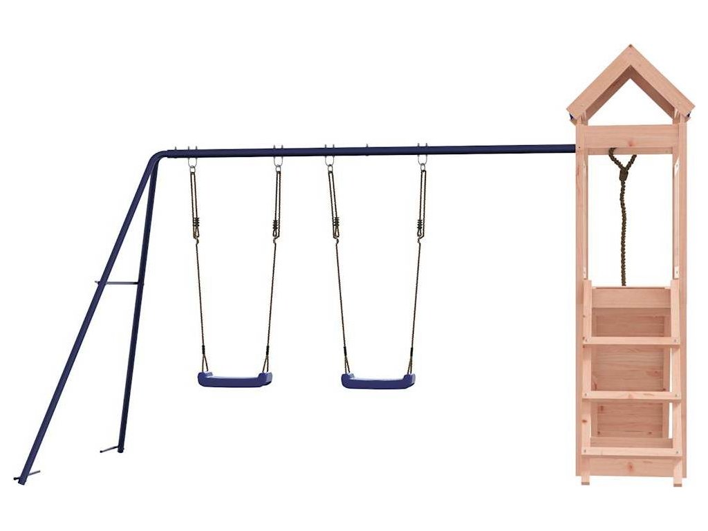 - Odolný materiál: Rám tohoto zahradního hřiště je vyroben z masivního dřeva douglasky. Douglaska je známá svou pevností a dlouhou životností. Jeho sytá červenohnědá barva a jedinečná kresba dřeva působí hřejivým a přírodním dojmem. Vyznačuje se dobrou stabilitou a odolností vůči povětrnostním vlivům, takže je ideální pro výrobu interiérového i venkovního nábytku.