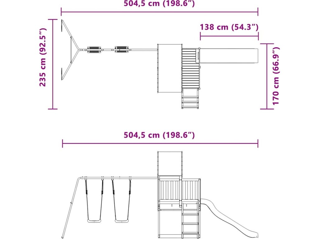 - Stabilní dřevěný rám: Dřevěný rám zahradní hrací věže zajišťuje mimořádnou pevnost a stabilitu. Nohy dětské houpačky ve tvaru písmene A navíc zajišťují potřebnou rovnováhu.