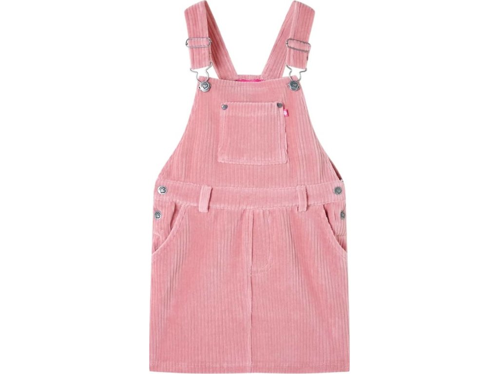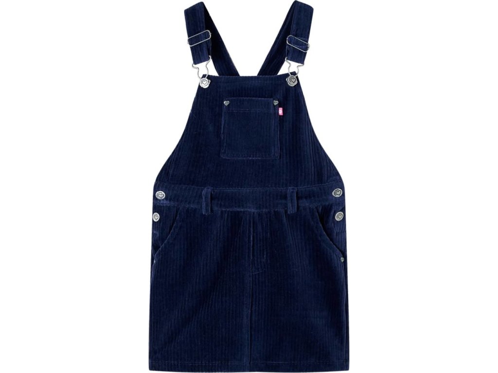 Tyto dětské šaty mají nastavitelná ramínka, knoflíky na bocích a praktické kapsy. Šaty s laclem jsou vyrobeny z měkkého manšestrového materiálu, který obsahuje 58 % bavlny, 37 % polyesteru a 5 % elastanu, takže jsou velmi pohodlné.