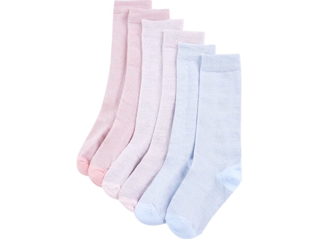 Tyto dětské ponožky jsou jednobarevné se špetkou třpytek. Mají zesílené paty a špičky, aby déle vydržely. Dětské ponožky jsou vyrobeny z tkaniny bohaté na bavlnu a udržují nohy v teple a suchu.