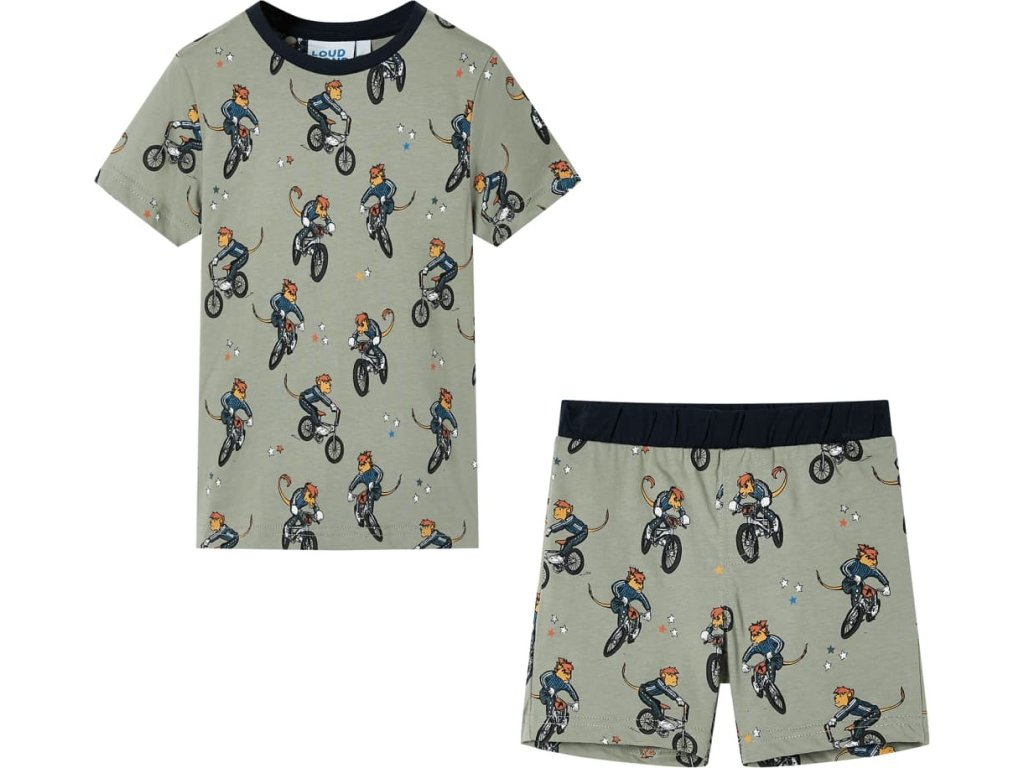 Toto dětské pyžamo s krátkými rukávy má kulatý výstřih, elastický pas a rovný střih. Dětské pyžamo má po celé ploše potisk zvířete jedoucího na kole. Dětské pyžamo je vyrobeno z měkkého materiálu se 100% bavlnou, takže je velmi pohodlné a prodyšné.