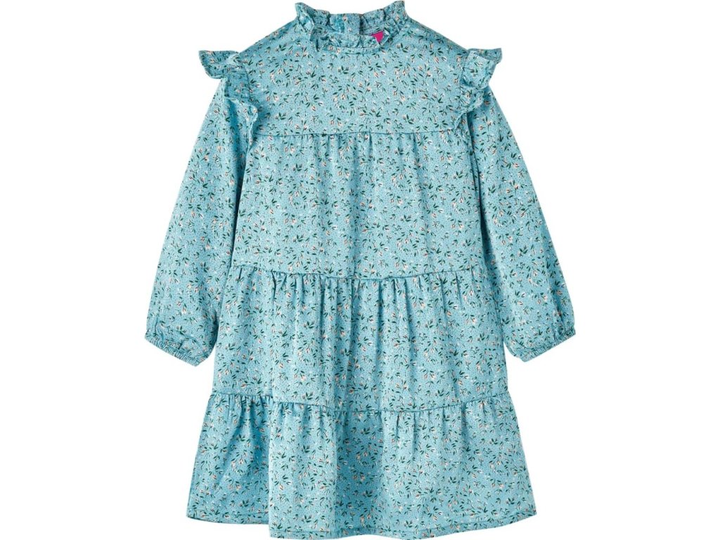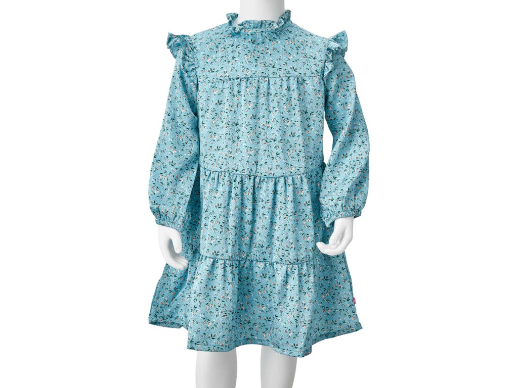 Tyto dětské šaty s dlouhými rukávy mají kulatý výstřih a vzadu se zapínají na neviditelný zip. Šaty mají volánky a celoplošný květinový potisk a vypadají vskutku elegantně a krásně. Květinové šaty jsou vyrobeny ze 100% polyesteru pro větší pohodlí a prodyšnost.