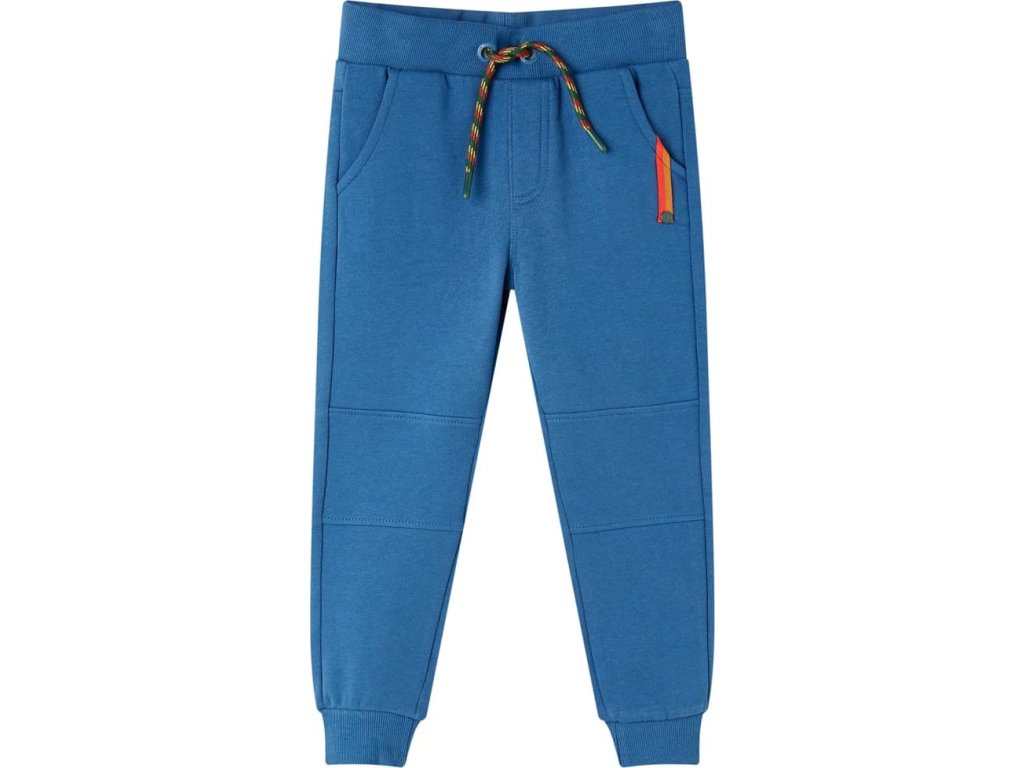 Tyto dětské tepláky mají v pase stahovací šňůrku, dvě přední kapsy, zadní kapsu a žebrované úpletové lemy na nohavicích. Dětské tepláky jsou vyrobeny z měkkého materiálu, který obsahuje 50 % bavlny a 50 % polyesteru a je ošetřen silikonem a enzymatickým opráním, aby byl měkký a příjemný na dotek. Má měkkou fleecovou podšívku, takže je velmi teplá.
