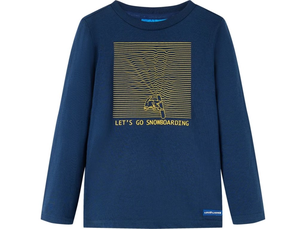 Toto dětské tričko má dlouhé rukávy, kulatý výstřih a rovný střih. Na tomto námořnicky modrém tričku je vyobrazen snowboardista. Dětské tričko s dlouhým rukávem je vyrobeno ze 100% bavlny, která je měkká a příjemná na dotek.