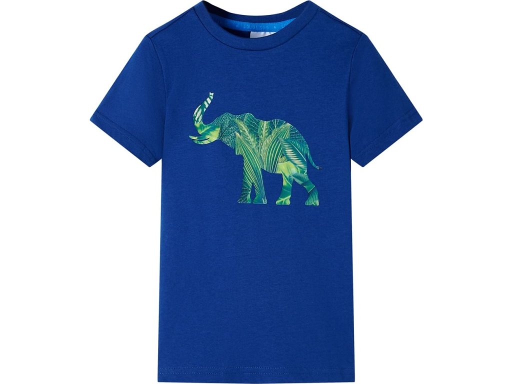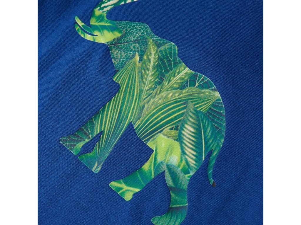 Toto dětské tričko má krátké rukávy, kulatý výstřih a rovný střih. Dětské tričko má na přední straně potisk slona složeného z listů. Dětské tričko je vyrobeno ze 100% bavlny, takže je měkké a příjemné na dotek.