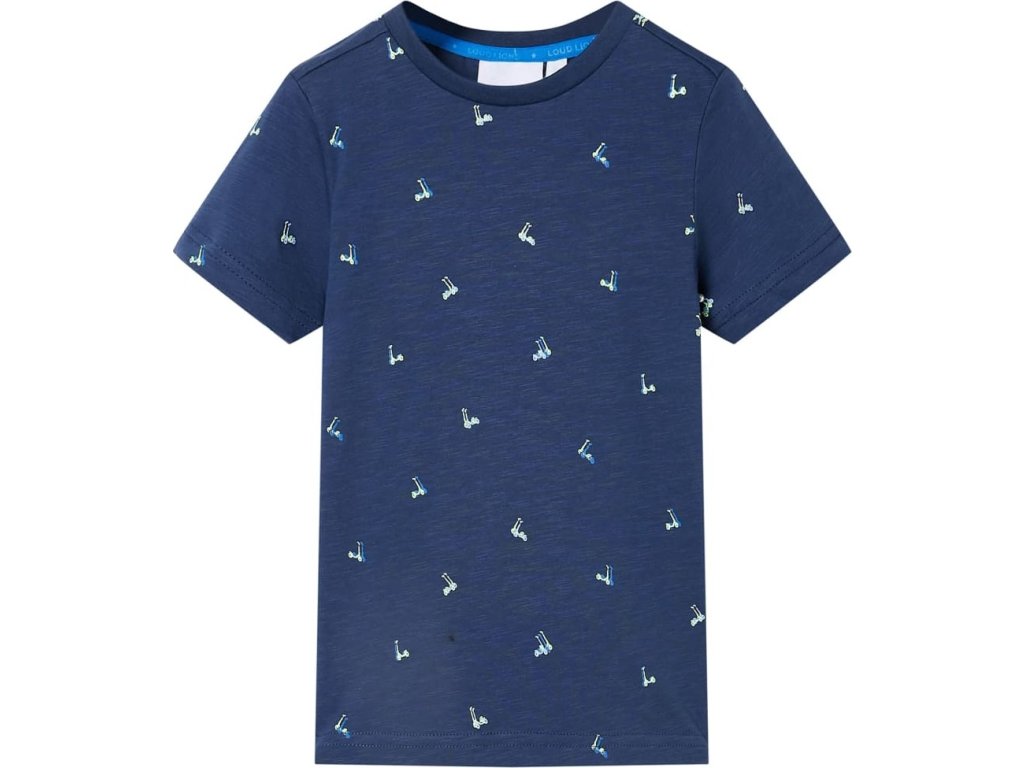 Toto dětské tričko má krátké rukávy, kulatý výstřih a rovný střih. Toto tričko na sobě má koloběžky. Dětské tričko s krátkým rukávem je vyrobeno ze 100% bavlny, takže je měkké a příjemné na dotek.