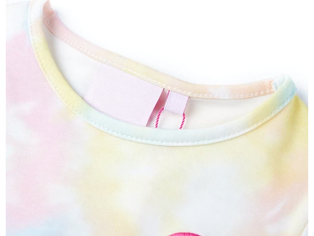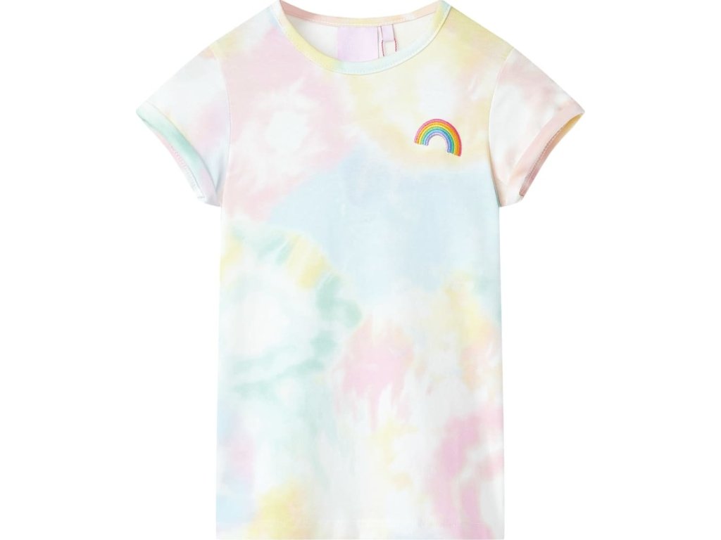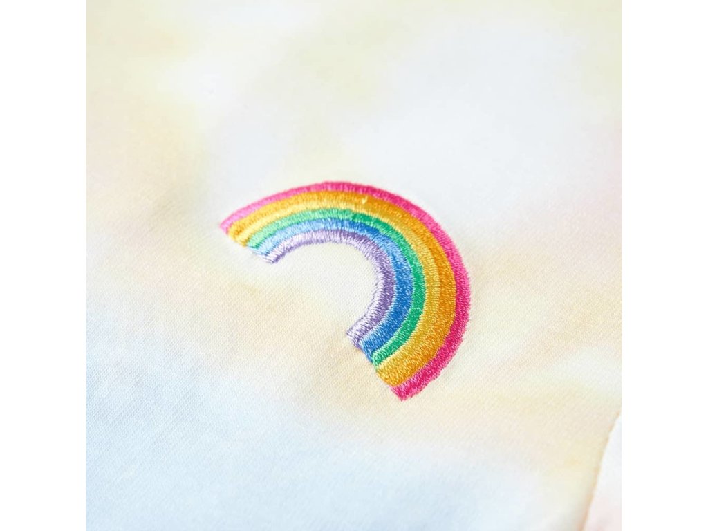 Toto dětské tričko má krátké rukávy, kulatý výstřih a rovný střih. Dětské tričko má na sobě roztomilou duhu. Dětské tričko je vyrobeno z bavlny a elastanu, takže je měkké a příjemné na dotek.