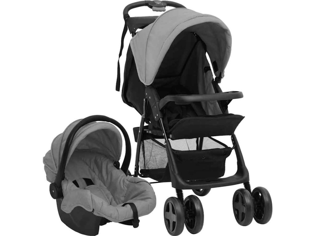 Dětský kočárek 3 v 1 a černý ocel [10393]