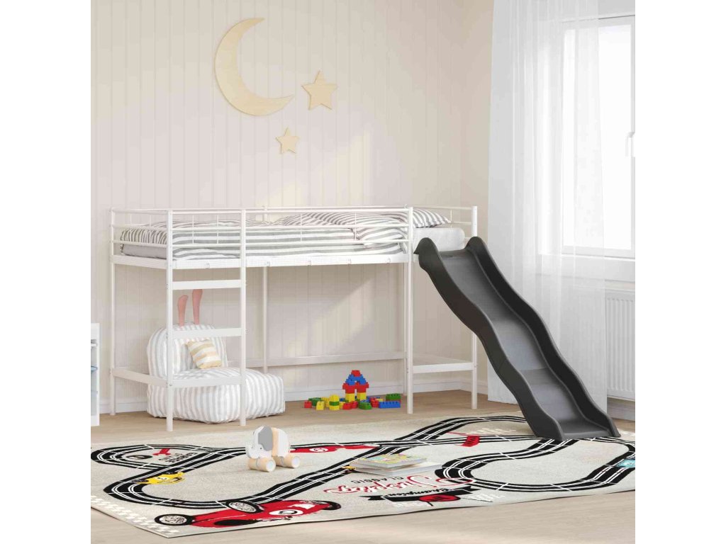 Dětský loftový postelový rám se skluzavkou Bílá a antracitová [42020784]