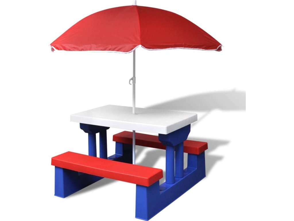 Dětský piknikový stůl, lavičky a slunečník vícebarevný [41455]
