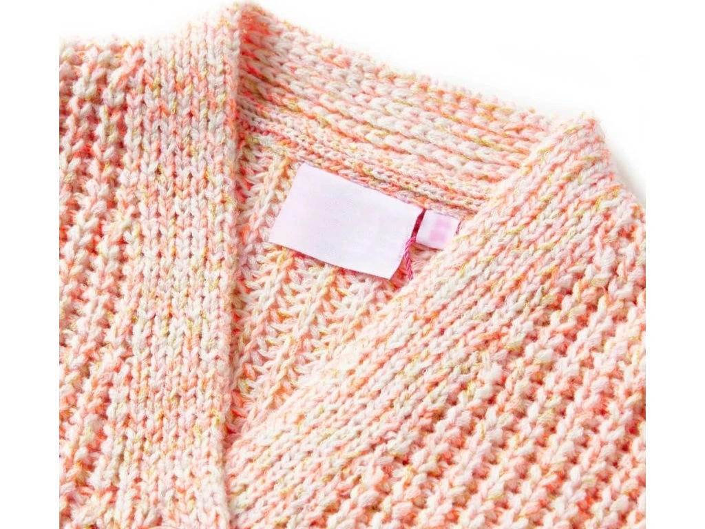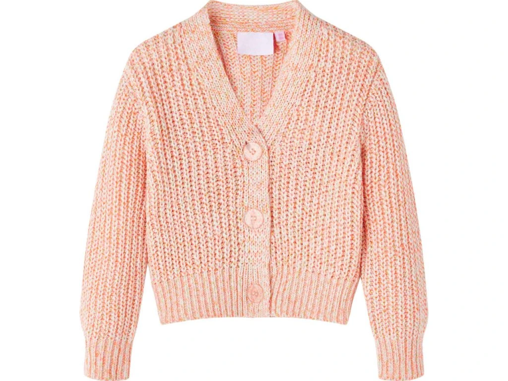 Tento dětský svetr má dlouhé rukávy, výstřih do V a zapíná se na řadu knoflíků. Tento dětský cardigan je pletený z měkkého materiálu, který obsahuje 60 % bavlny, 21 % polyesteru a 19 % akrylu, což zajišťuje větší teplo a pohodlí. Krátký cardigan s vysokým obsahem bavlny má žebrované okraje úpletu na spodním lemu a rukávech.