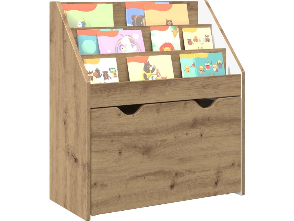 - Přátelské vlastnosti pro děti: Tenhle regál je navržen tak, aby byl snadno použitelný pro děti, s police, kde si mohou věci snadno najít. Jsou tu zaoblené hrany a stabilní základna, takže je to bezpečné pro tvoje malé.