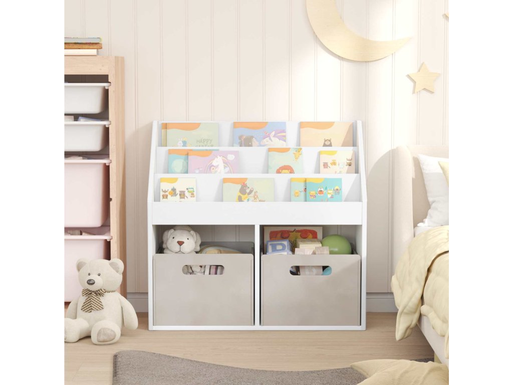 - Praktické využití: S prostornými policemi je tento regál navržen pro organizaci všeho od knih po hračky. Otevřený design polic usnadňuje dětem přístup, což podporuje učení a organizaci.