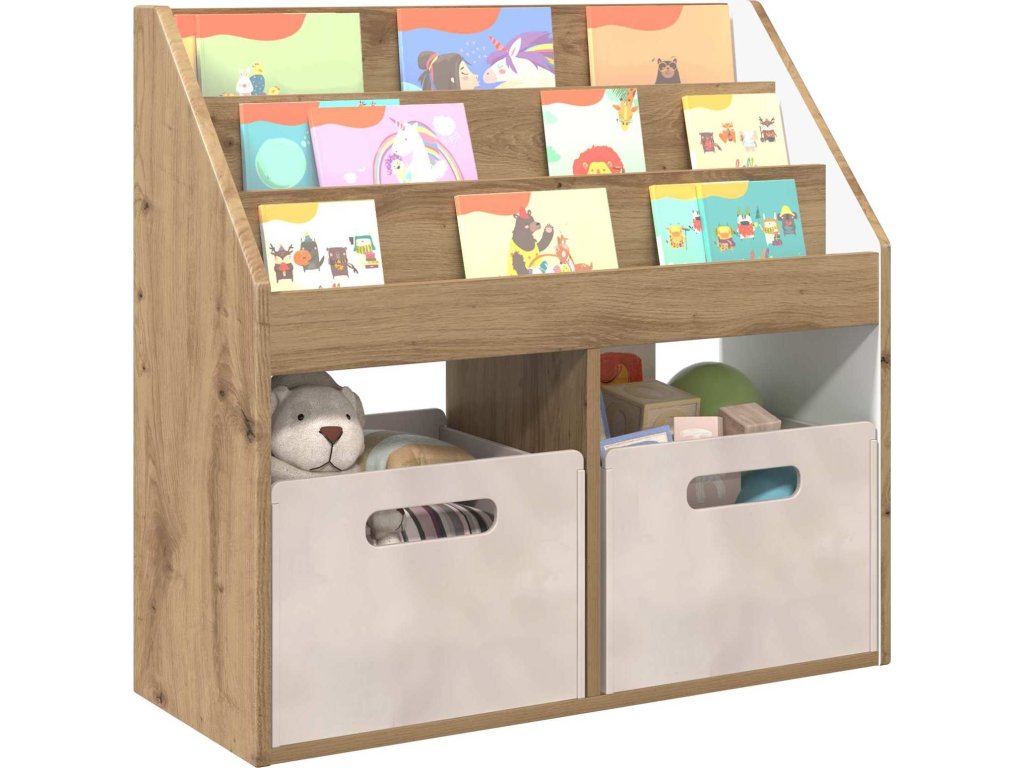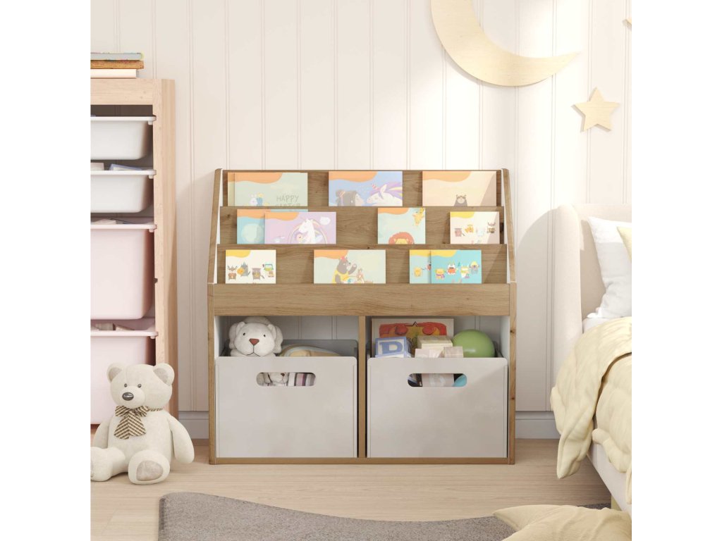 - Praktické využití: S prostornými policemi je tento regál navržen pro organizaci všeho od knih po hračky. Otevřený design polic usnadňuje dětem přístup, což podporuje učení a organizaci.
