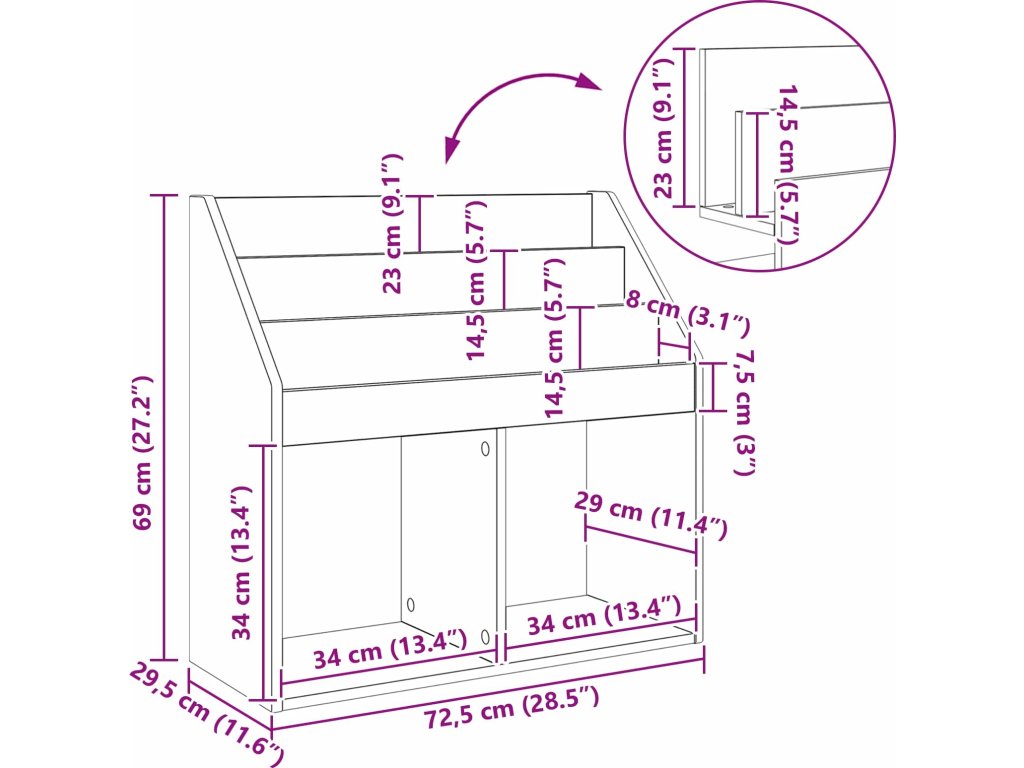 - Celkové rozměry: 72,5 x 29,5 x 69 cm (D x Š x V)
