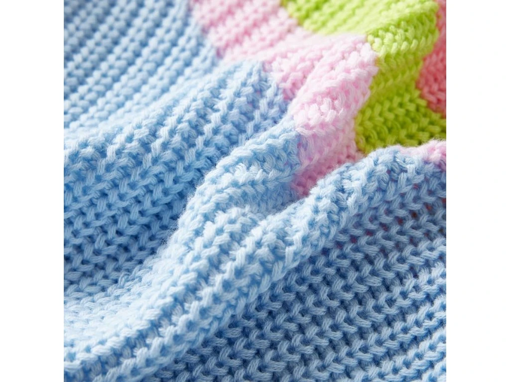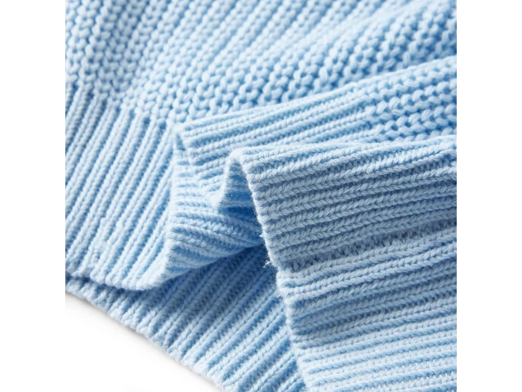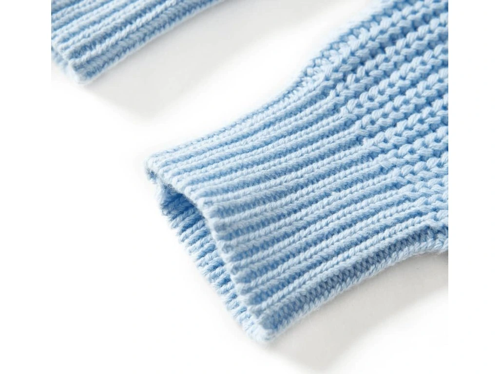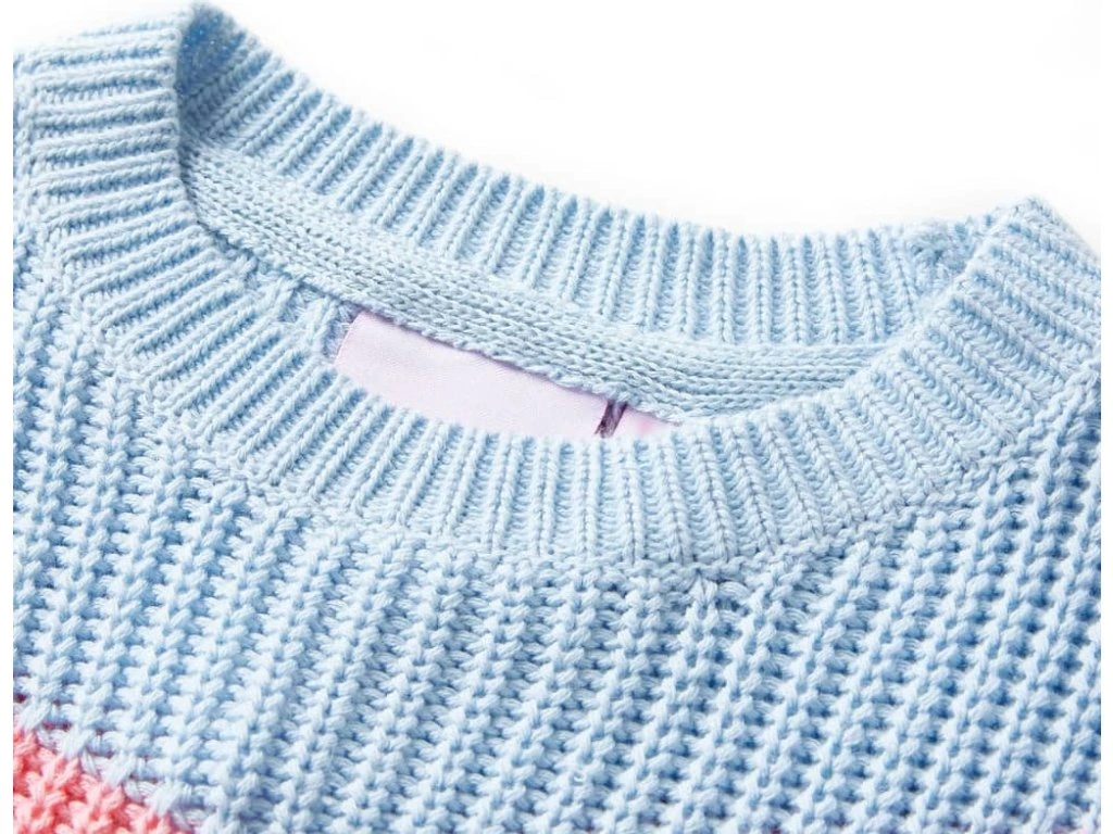 Tento dětský svetr má dlouhé rukávy, výstřih a rovný střih. Dětský svetr má barevný vzor ve tvaru písmene V. Dětský svetr je vyroben ze 100% bavlny s žebrovaným úpletem, který zajišťuje větší teplo a pohodlí.