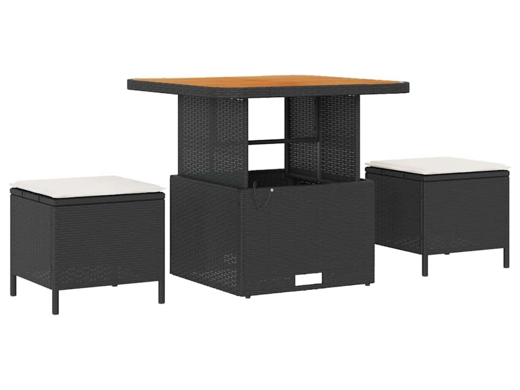 - Součásti: Souprava obsahuje opěradla z poly ratanu a odolné ocelové nohy. Je to pohodlné s klasickými opěrkami a přírodní akáciové dřevo dodává teplý dotek.