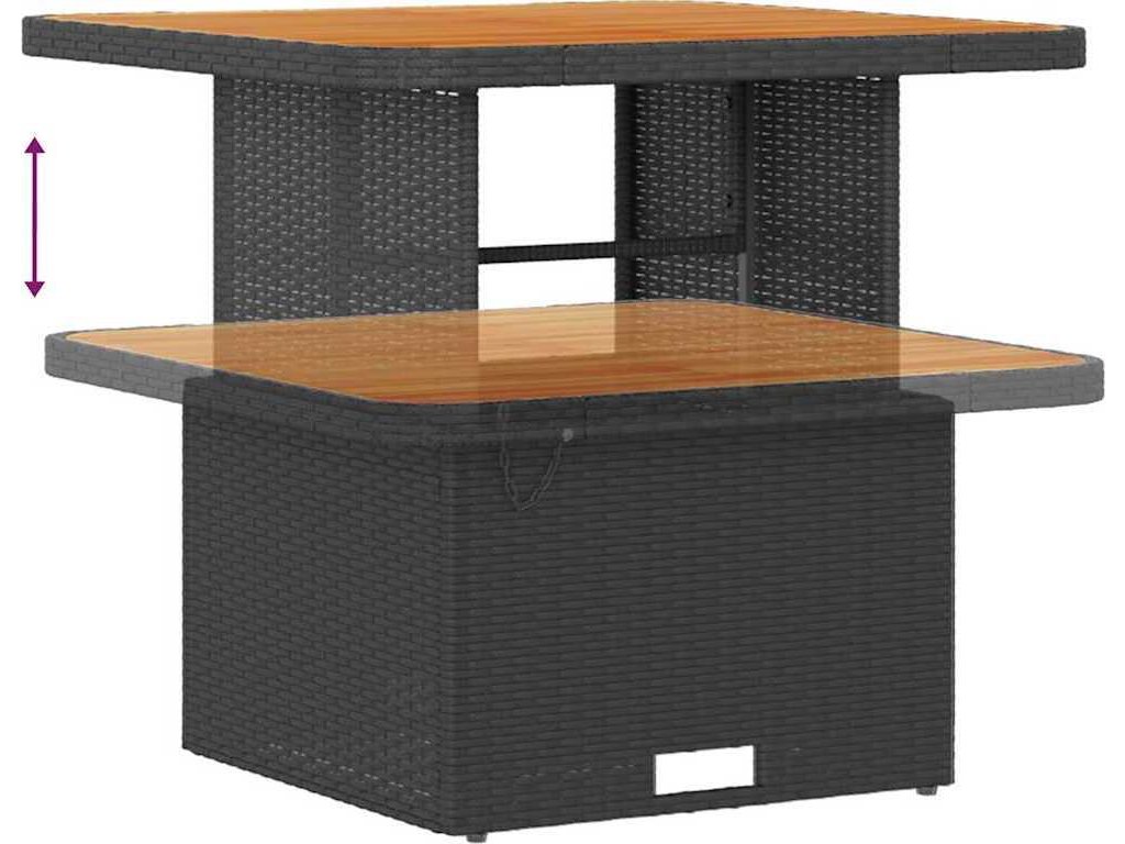 - Materiály: Tato zahradní sedací souprava je převážně z poly ratanu, což jí dodává šik vzhled, který se hodí k jakékoli venkovní výzdobě. Pevné akáciové dřevo přidává přírodní eleganci. Oba materiály jsou odolné vůči povětrnostním vlivům, takže máte spolehlivé a atraktivní sezení.