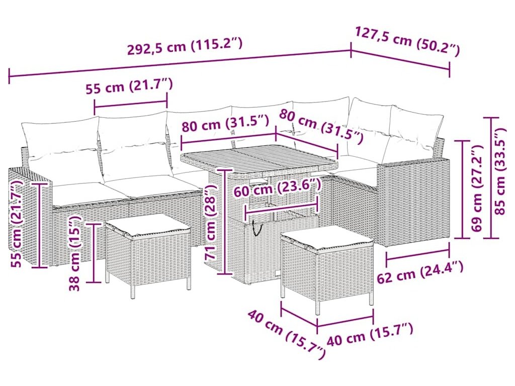 - Doporučené použití: Tato souprava je ideální pro venkovní prostory jako zahrady a terasy a přizpůsobí se různým příležitostem — od živých setkání po pohodové lenošení.
