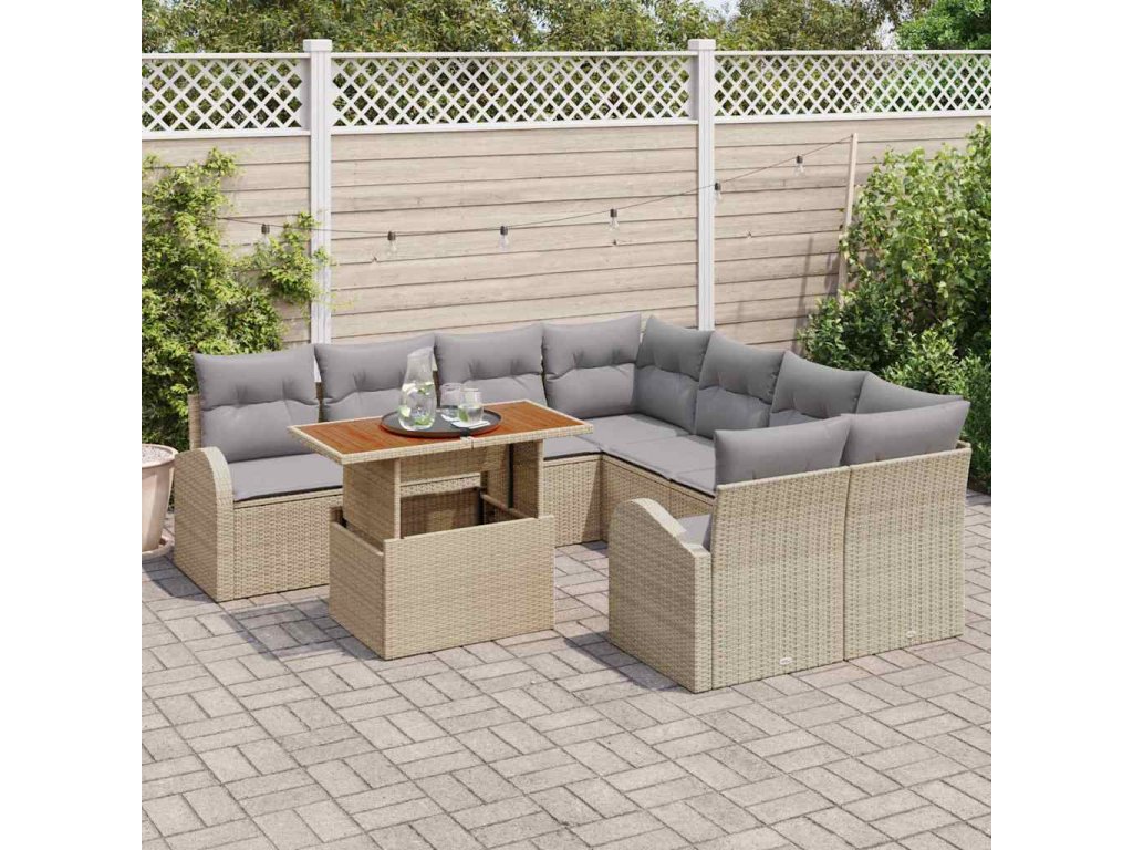 Sada zahradních pohovek s polštářem 9 pcs béžová a světle šedá [3349566]