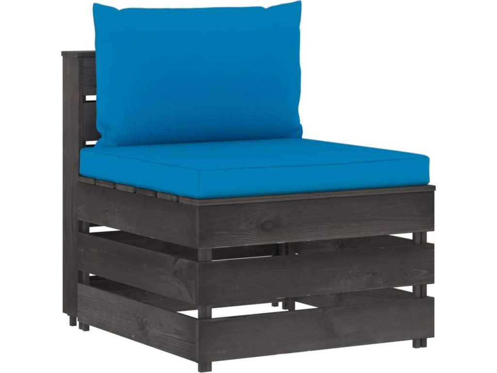 Dílčí středová pohovka s poduškami šedě impregnované dřevo [3068124]