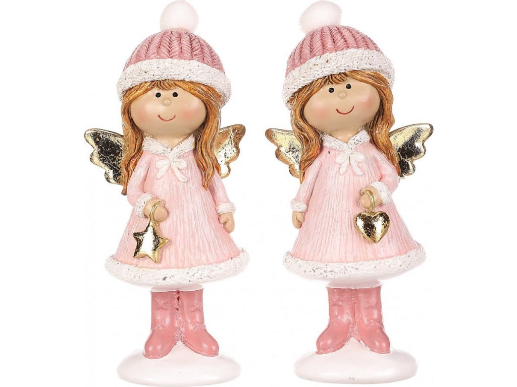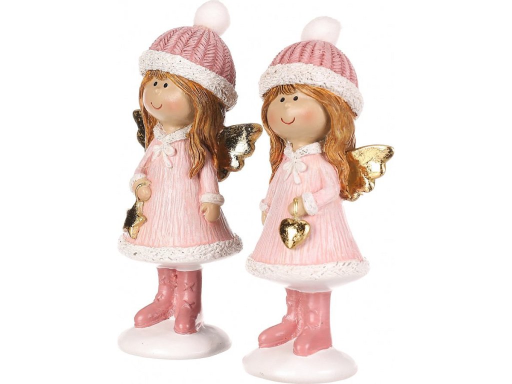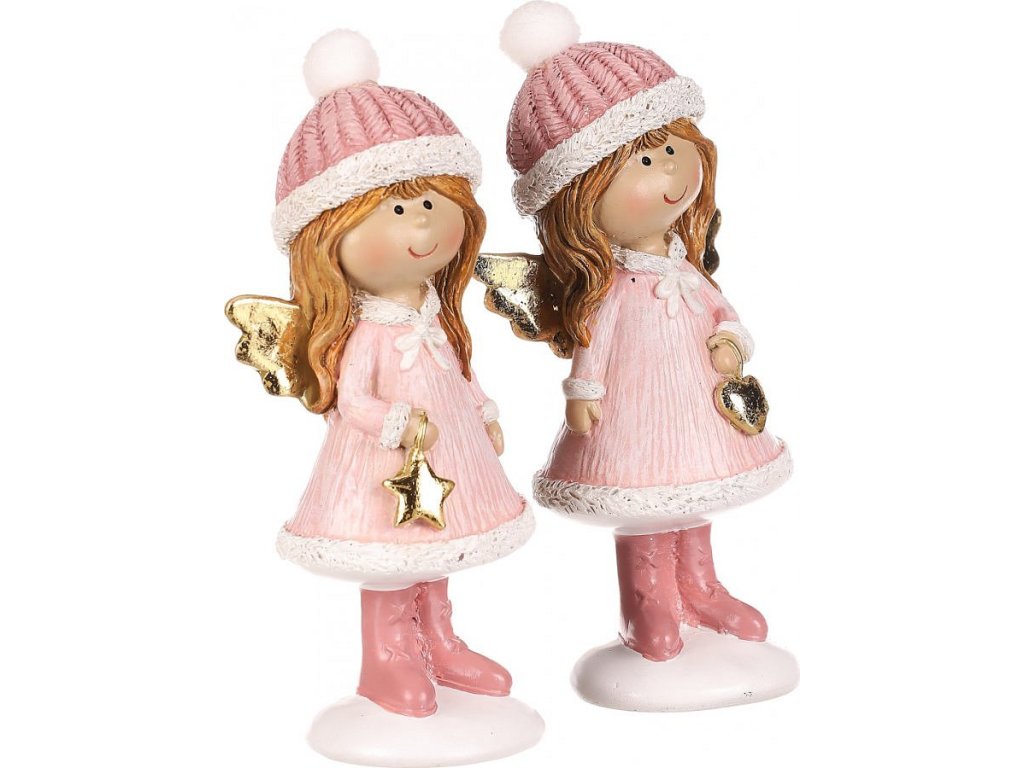 Oživte svůj interiér s našimi polyresinovými figurkami dívek v růžových oblečcích a čepicích. Tyto roztomilé postavičky jsou dokonalým doplňkem vaší vánoční a zimní výzdoby. Mix dvou druhů figur, jedna držící hvězdičku a druhá srdíčko, dává možnost výběru. Oba druhy sošek ve stejném stylu, mají malá roztomilá křidélka, která dodávají do vašeho prostoru nádech nebeské lehkosti.