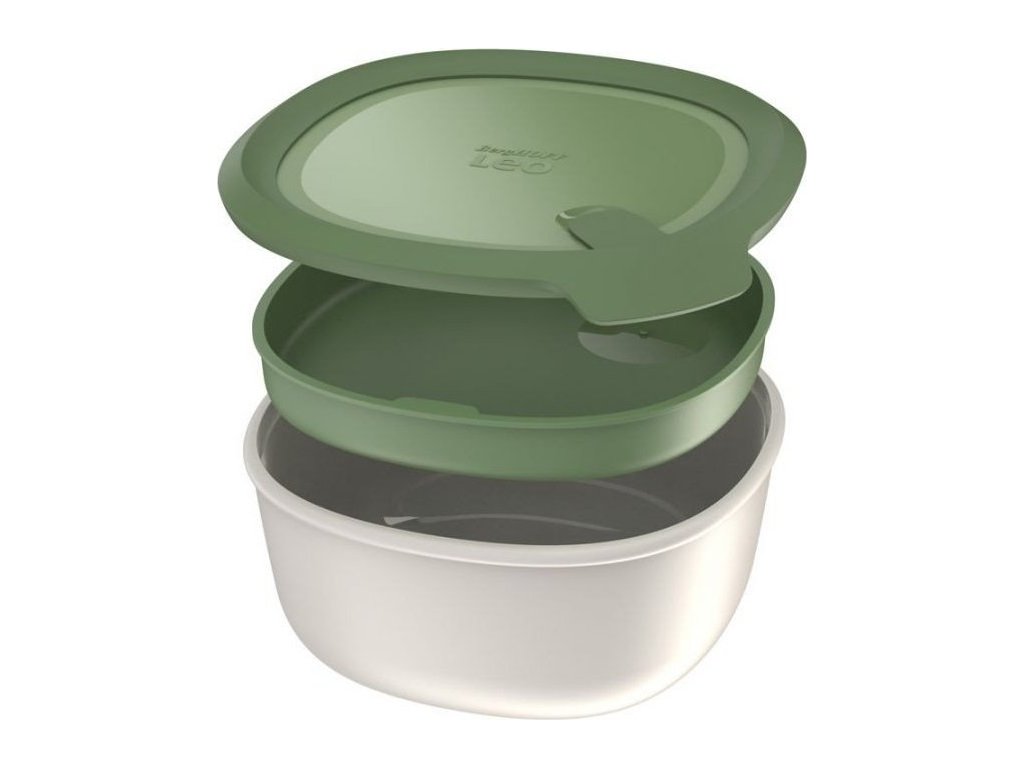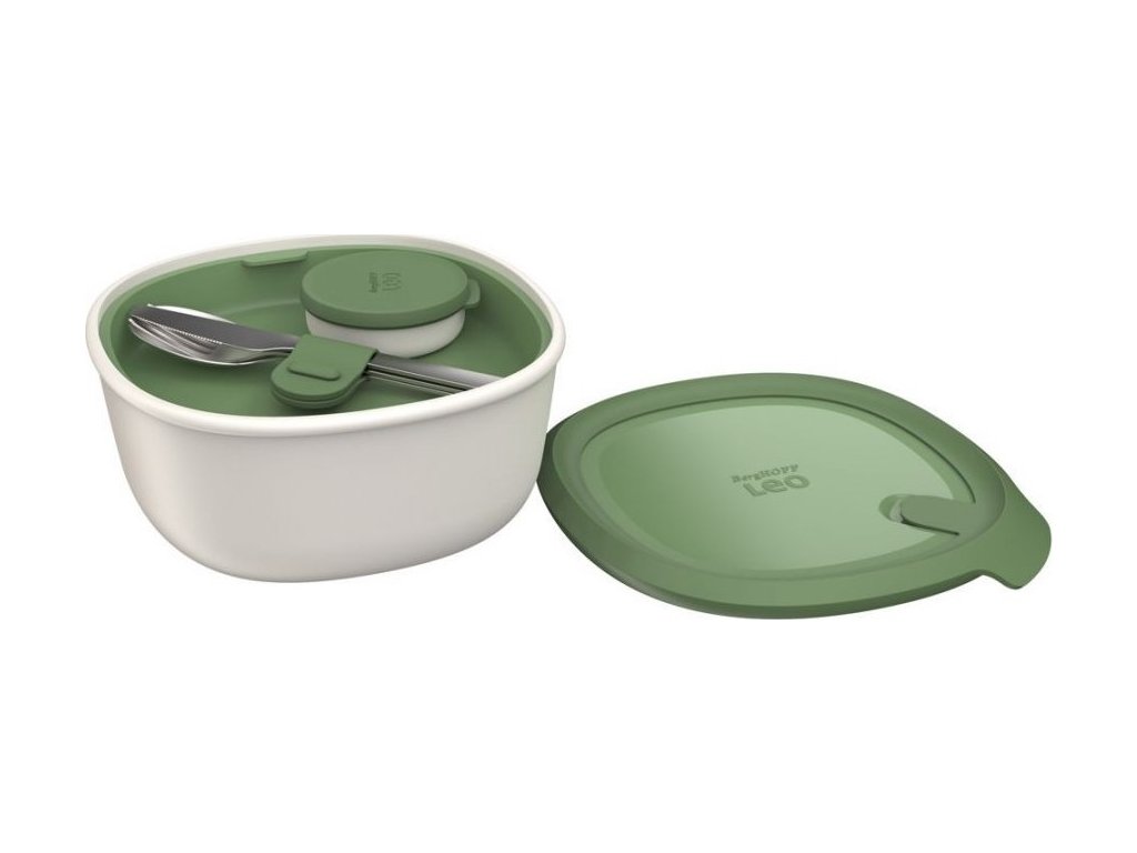 Velmi praktická sada salátové mísy s víkem a příborem od belgické značky BergHOFF.Slouží ke skladování a především přenos nejrůznějších druhů potravin i hotových pokrmů. Vyrobená z odolného BPA Free plastu. Díky tomu ji můžete bez problému použít v mikrovlnné troubě i v mrazáku. Dóza má vlastní těsnící víčko, které neprotéká. Součástí sady je také menší dózička na různé ingredience či dresing a příbor z nerezové oceli. Jednoduché čištění, všechny dózy navíc můžete dát do myčky nádobí.