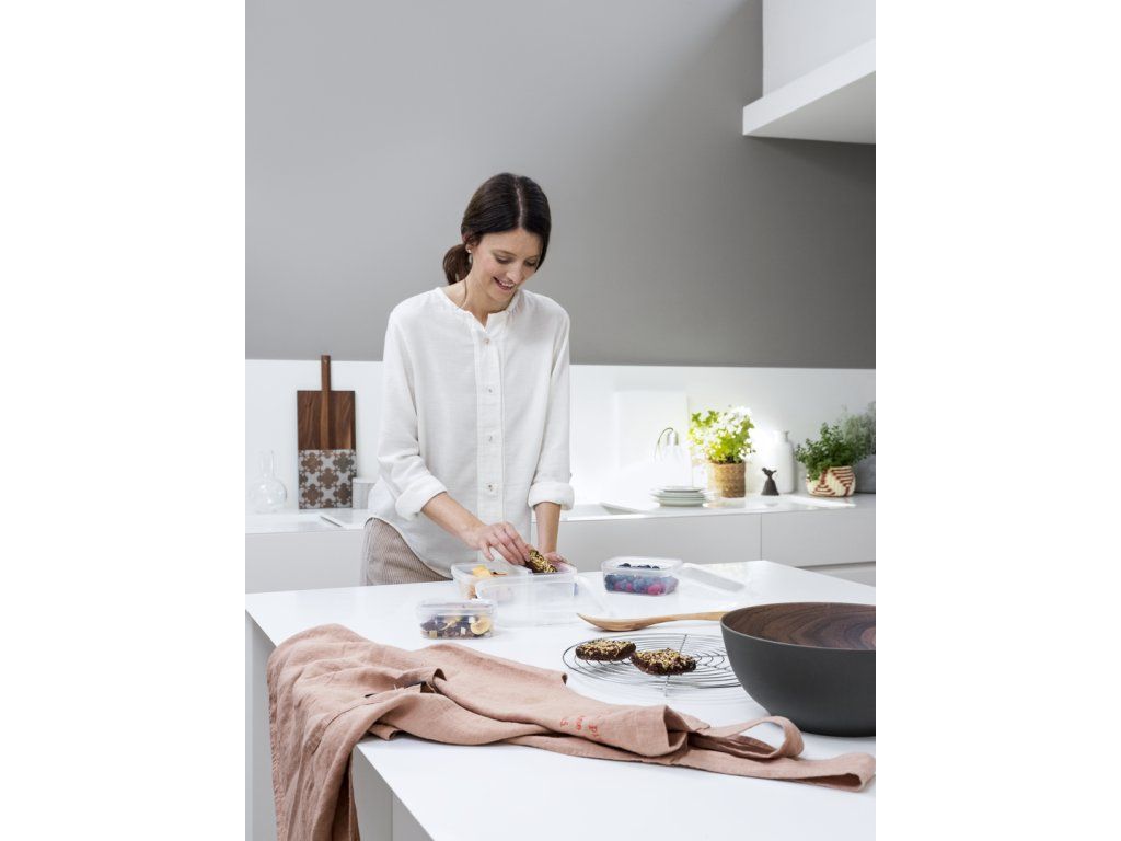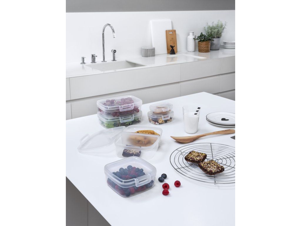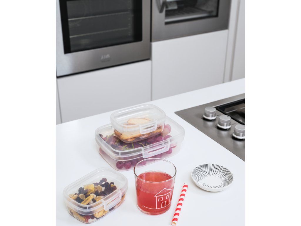 Obdélníková dóza Curver Snap Box 0,4 l snadno uchová jakékoli potraviny. Jednoduché uzavírání a otevírání boxu usnadní 1 klip na víku. Uložené potraviny jsou chráněny před vnějšími nežádoucími vlivy. Dáváte dětem na svačinu něco malého, nebo vy sami nosíte k obědu do práce nějaký pamlsek? Tento praktický malý box velmi dobře poslouží. Potraviny se během cesty nevysypou díky víku. Údržba boxu je snadná. Umyjete je ručně či v myčce na nádobí.