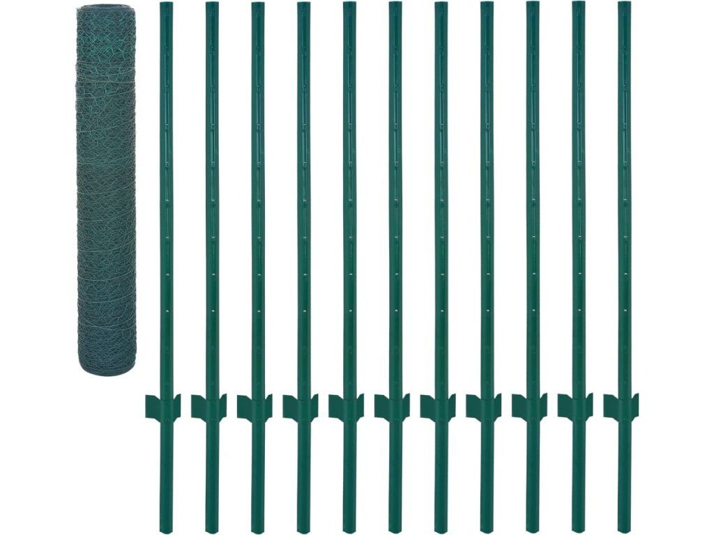 Drátěný plot se sloupky ocel 25 x 1 m zelený [144610]