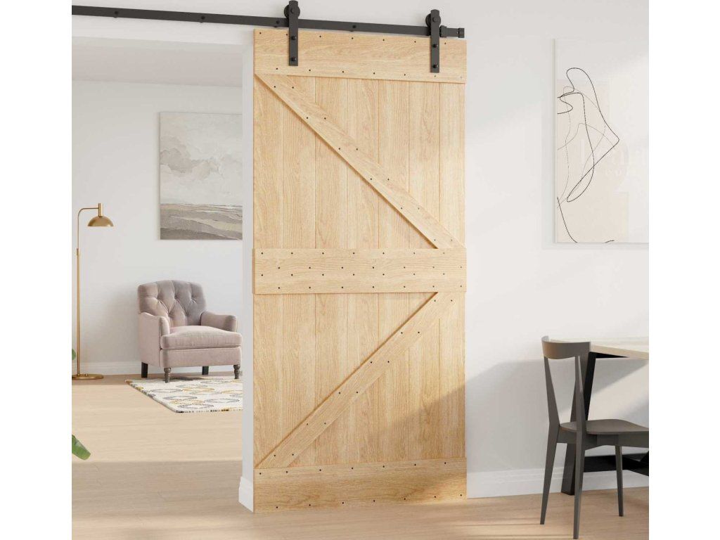 - Materiál z masivní borovice: Tyhle dveře jsou vyrobené z masivního borového dřeva, které ukazuje přírodní strukturu a vzhled dřeva.