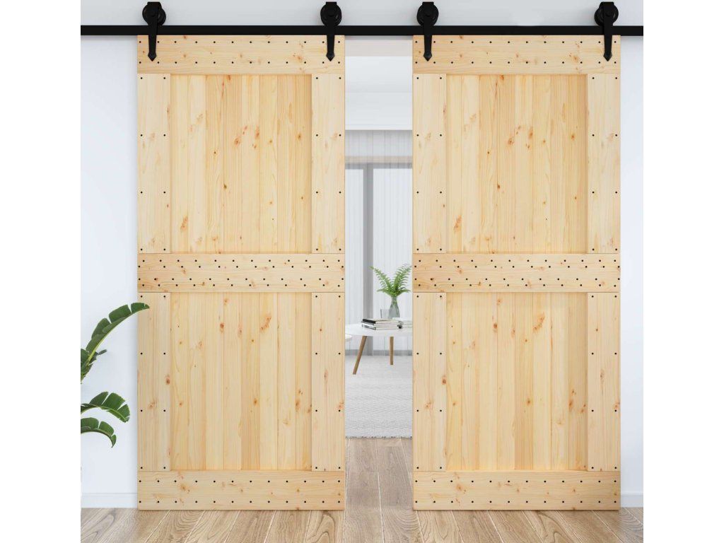 - Materiál z masivní borovice: Tyhle dveře jsou vyrobené z masivního borového dřeva, které ukazuje přírodní strukturu a vzhled dřeva.