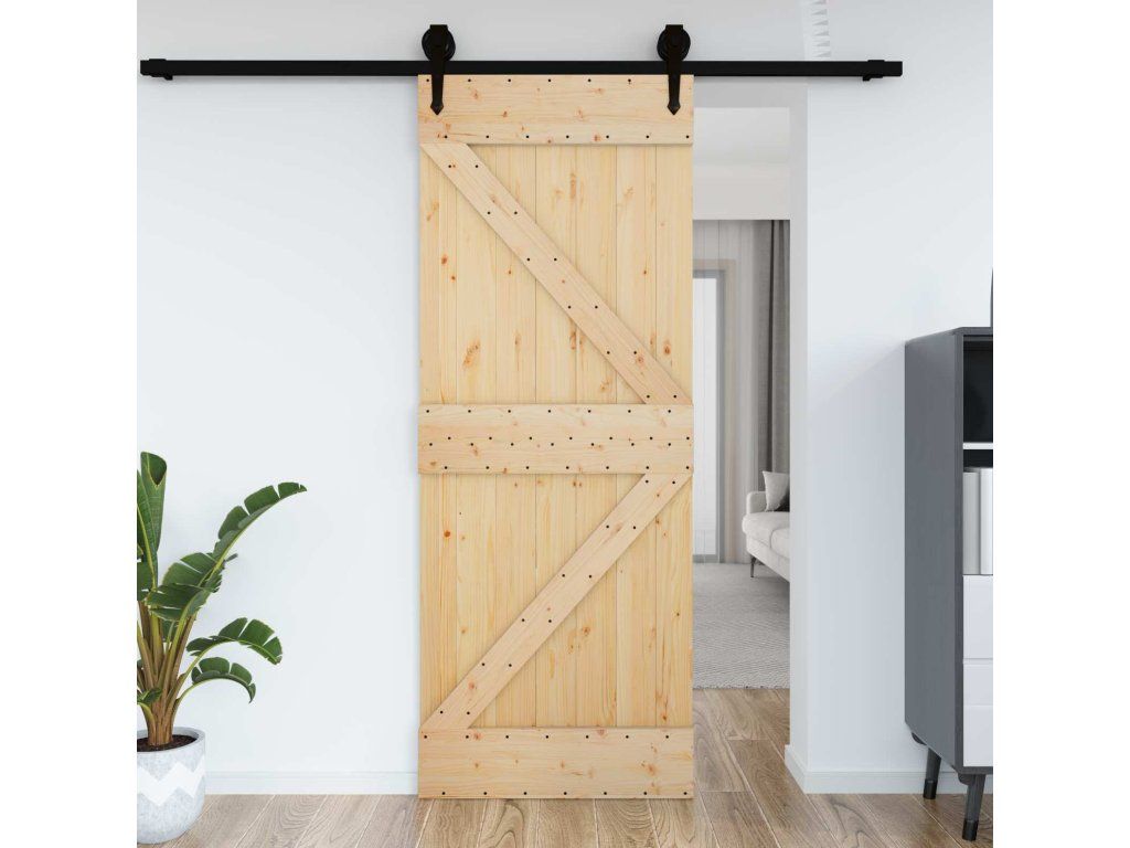 - Materiál z masivní borovice: Tyhle dveře jsou vyrobené z masivního borového dřeva, které ukazuje přírodní strukturu a vzhled dřeva.