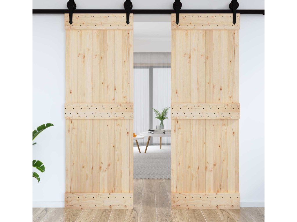 - Materiál z masivní borovice: Tyhle dveře jsou vyrobené z masivního borového dřeva, které ukazuje přírodní strukturu a vzhled dřeva.