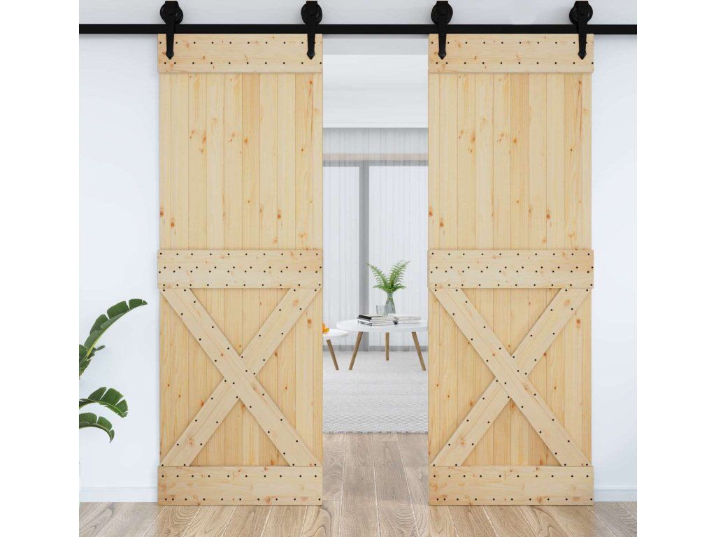 - Materiál z masivní borovice: Tyhle dveře jsou vyrobené z masivního borového dřeva, které ukazuje přírodní strukturu a vzhled dřeva.