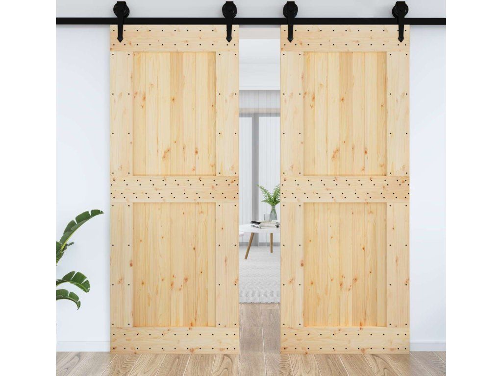 - Materiál z masivní borovice: Tyhle dveře jsou vyrobené z masivního borového dřeva, které ukazuje přírodní strukturu a vzhled dřeva.