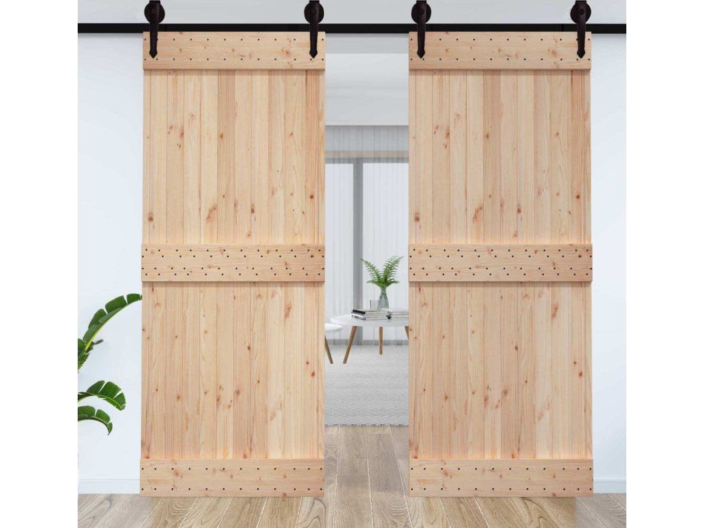 - Materiál z masivní borovice: Tyhle dveře jsou vyrobené z masivního borového dřeva, které ukazuje přírodní strukturu a vzhled dřeva.