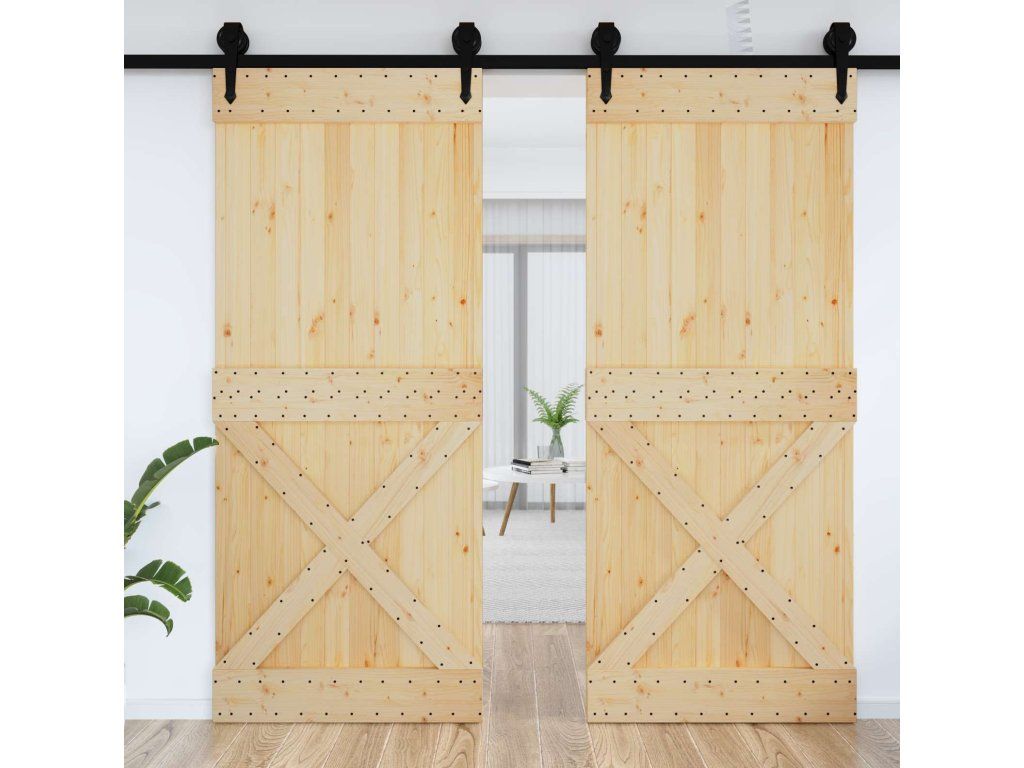 - Materiál z masivní borovice: Tyhle dveře jsou vyrobené z masivního borového dřeva, které ukazuje přírodní strukturu a vzhled dřeva.