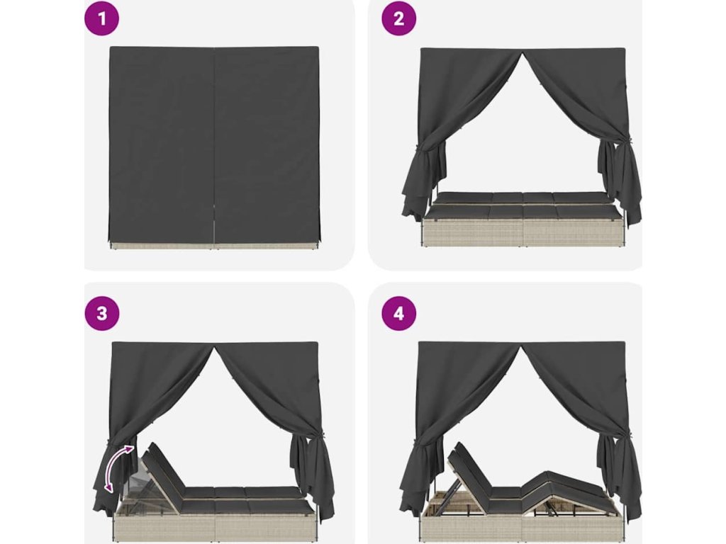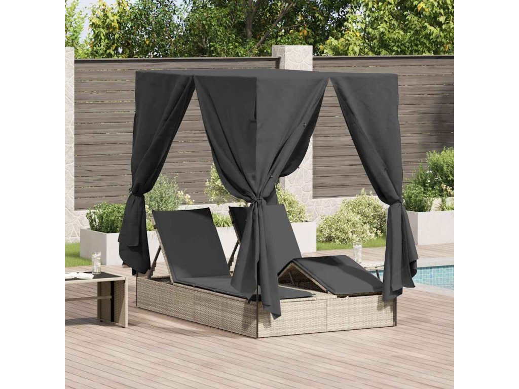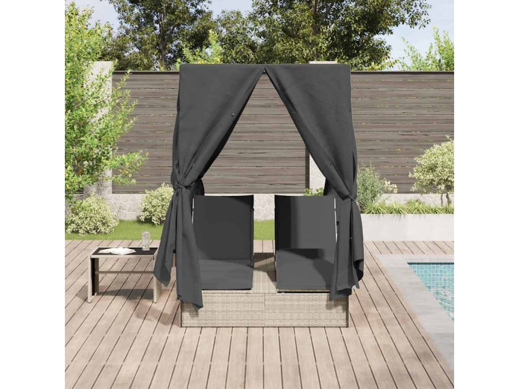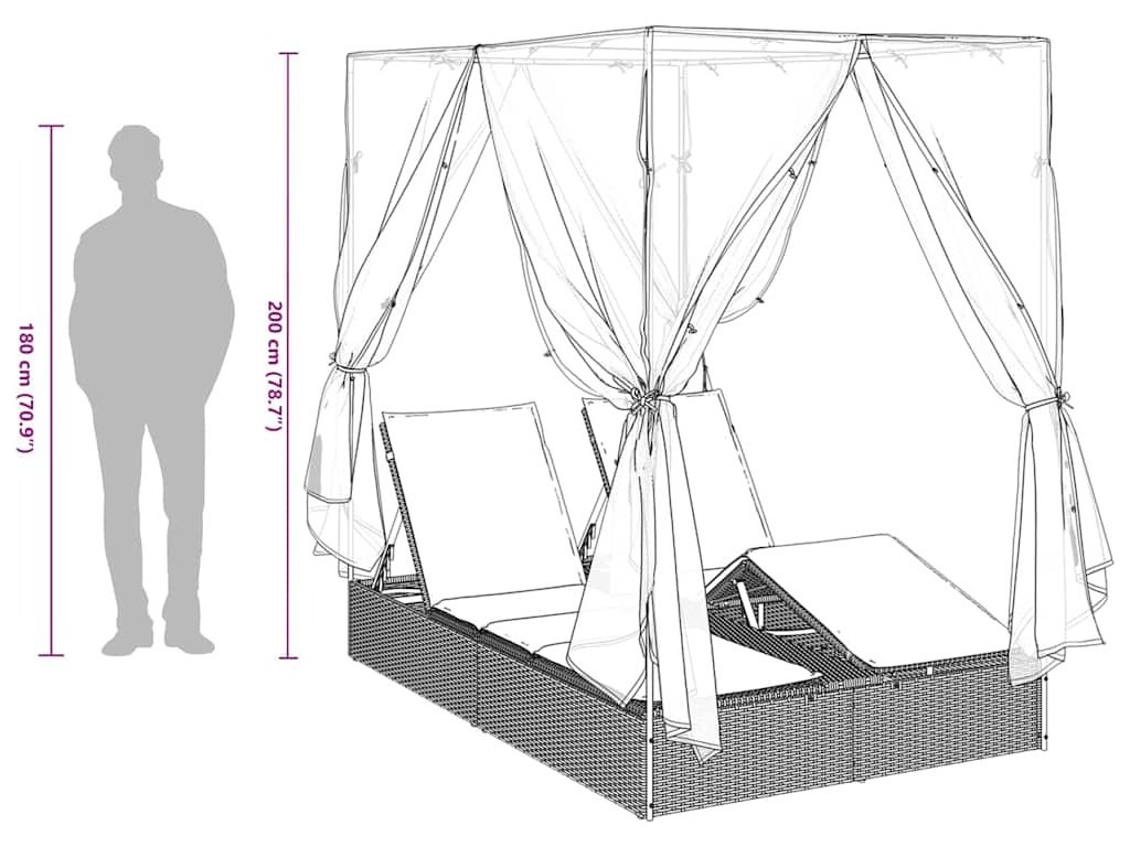 Toto venkovní dvojité lehátko kombinuje styl a užitečnost, ideální pro odpočinek na zahradě nebo terase. S elegantním designem je z polyratanu a má pevný ocelový rám, což znamená komfortní a praktické řešení pro venkovní volný čas. Hladké linie a moderní vzhled dělají z tohoto lehátka perfektní prvek do venkovního prostředí. Díky střeše a závěsům si vytvoříte vlastní venkovní útočiště. Prostorný design je ideální pro dva, skvělé pro páry nebo návštěvy. Ať už se sunčíte nebo užíváte chládek, tohle lehátko vyhovuje každému vkusu.