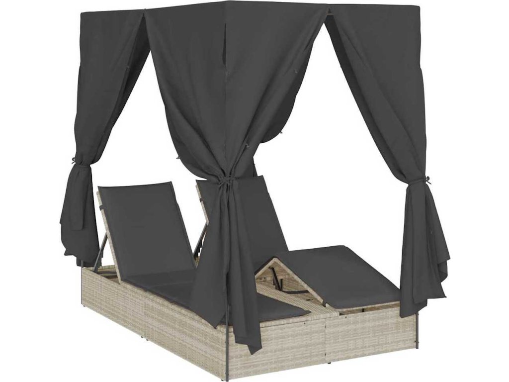 Dvojité sluneční lehátko Světle šedá 205 x 129 x 200 cm [3376132]