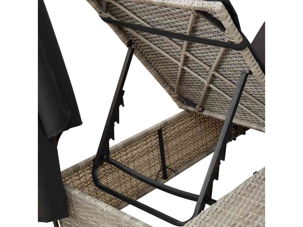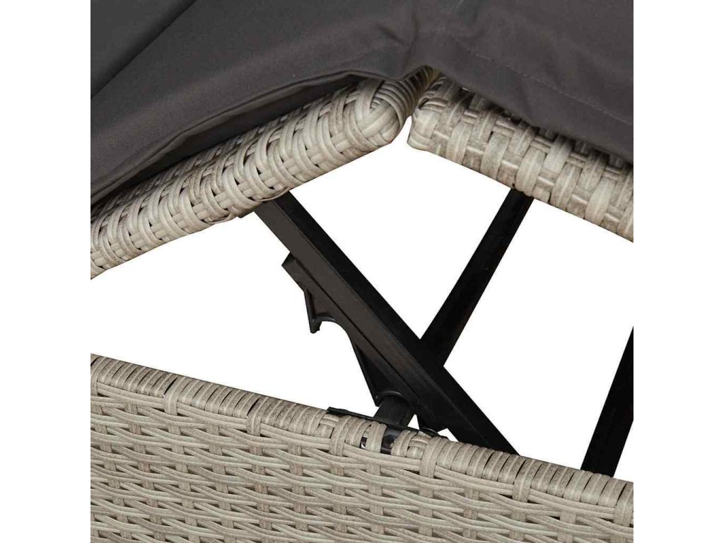 - Prémiové materiály: Lehátko je z odolného polyratanu a má pevný ocelový rám, takže vydrží různé povětrnostní podmínky a stále bude vypadat dobře. Materiály zaručují dlouhou životnost a udržení funkce a estetiky po roky.