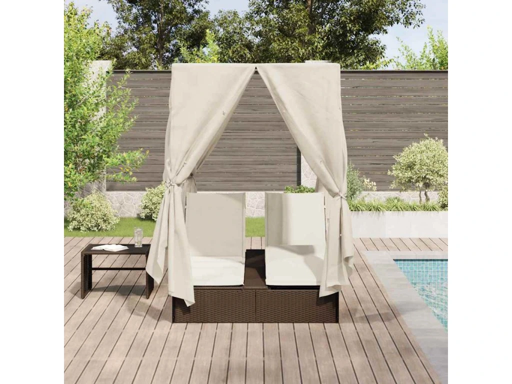 Toto venkovní dvojité lehátko kombinuje styl a užitečnost, ideální pro odpočinek na zahradě nebo terase. S elegantním designem je z polyratanu a má pevný ocelový rám, což znamená komfortní a praktické řešení pro venkovní volný čas. Hladké linie a moderní vzhled dělají z tohoto lehátka perfektní prvek do venkovního prostředí. Díky střeše a závěsům si vytvoříte vlastní venkovní útočiště. Prostorný design je ideální pro dva, skvělé pro páry nebo návštěvy. Ať už se sunčíte nebo užíváte chládek, tohle lehátko vyhovuje každému vkusu.