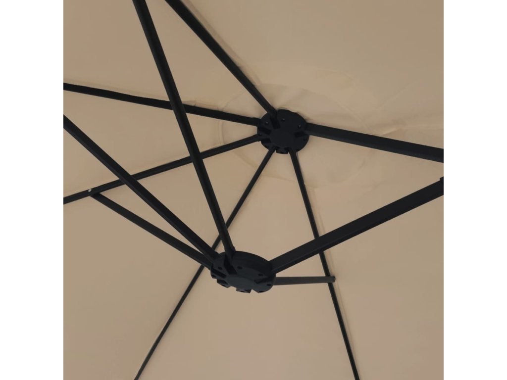 - Robustní rám: Jelikož je vybaven silnou železnou tyčí s práškovým nástřikem a odolnými žebry, je tento zahradní slunečník velmi stabilní a pevný.