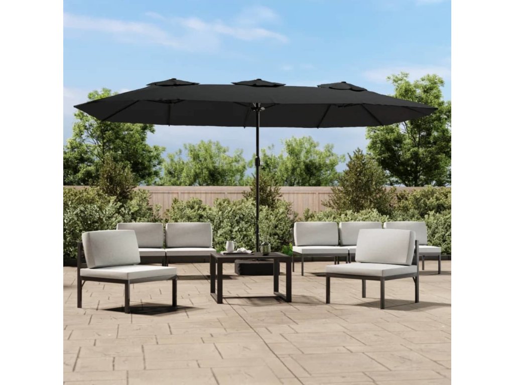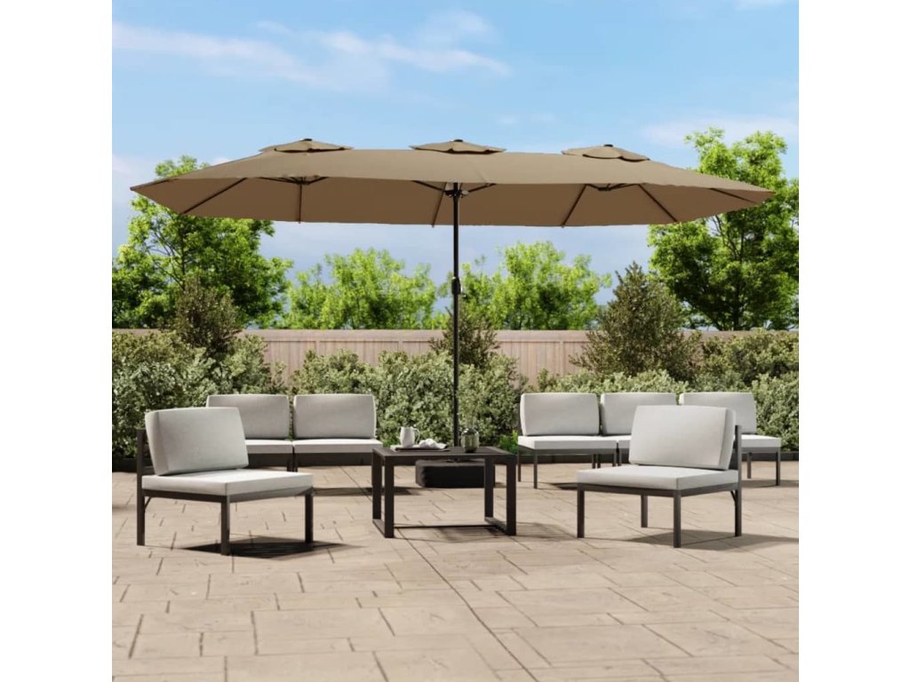 Tento elegantní dvojitý zahradní slunečník vám poskytne stín, a ochrání vás tak před sluníčkem a jeho škodlivým UV zářením.